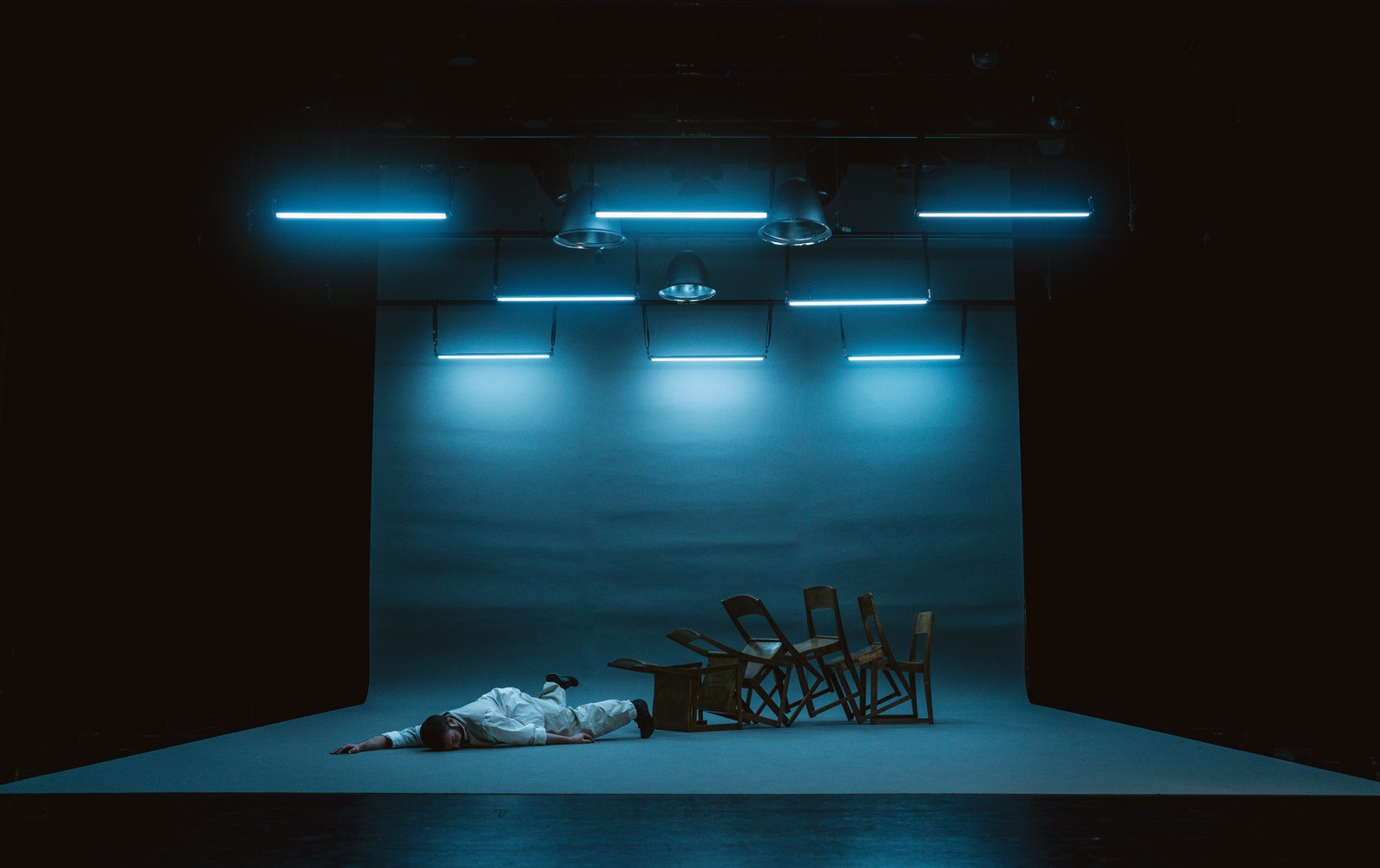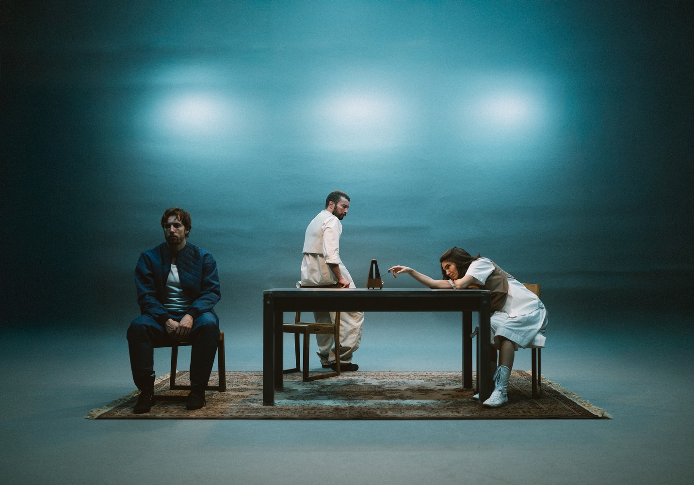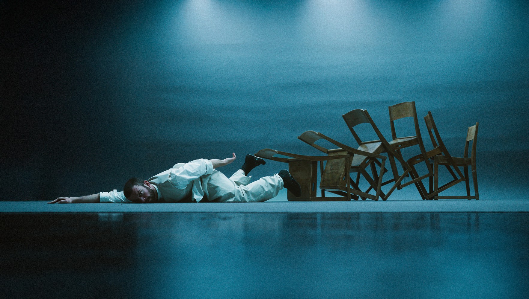 The stage production Tempo explores time, the sensation of time, and its acceleration, deceleration, and cessation. At its core lies a seemingly insignificant event that takes on vast dimensions, revealing the fragility of life.