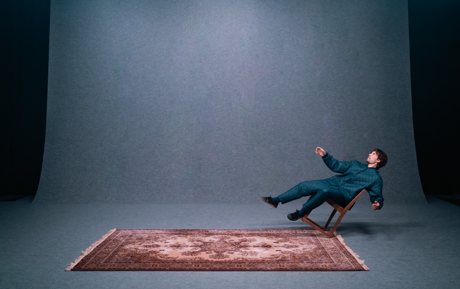 Tempo marks the first collaboration between magician and visual artist Kalle Nio and choreographer Fernando Melo. It is based on a text written by Harry Salmenniemi, as well as wordless scenes built around dance and stage illusions, where time slows down, reverses, and comes to a standstill. Tempo prompts the audience to question how the experience of time is formed and in what ways time can be understood. At the same time, it awakens viewers to their own temporality. The music for the production is composed by Samuli Kosminen.